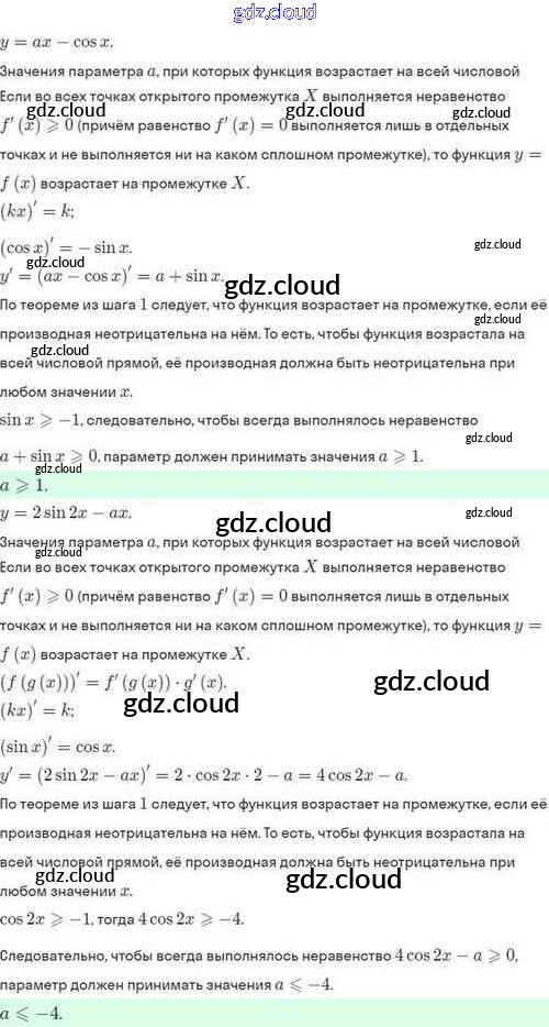 Ответы. §44. Применение производной для исследования функций на монотонность и экстремумы по Алгебре 10 класс Задачник Мордкович Базовый и углубленный уровень Мнемозина