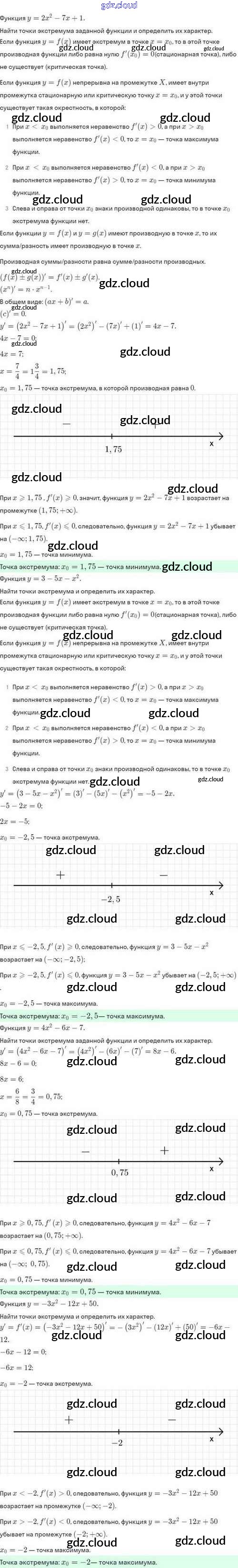Ответы. §44. Применение производной для исследования функций на монотонность и экстремумы по Алгебре 10 класс Задачник Мордкович Базовый и углубленный уровень Мнемозина