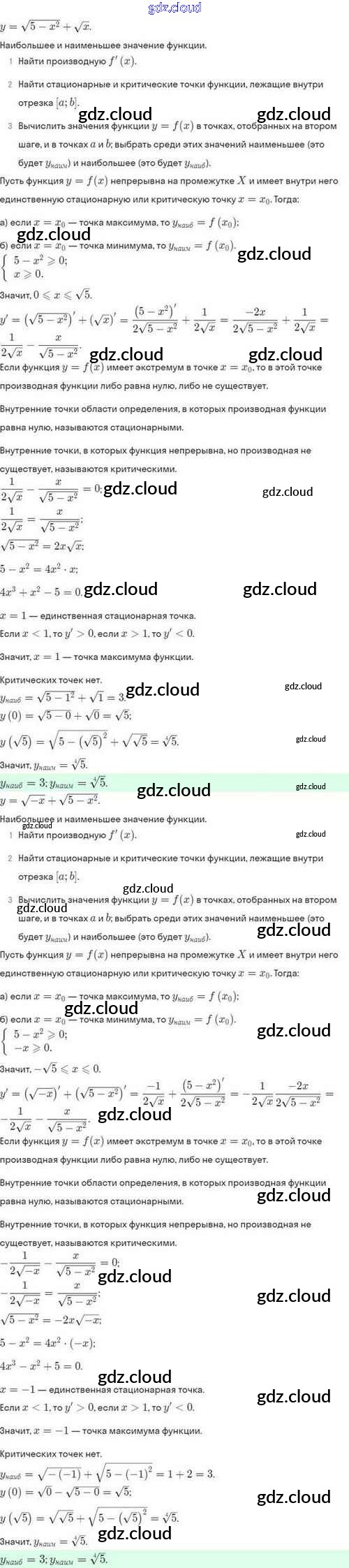 Ответы. §46. Нахождение наибольших и наименьших значений функции по Алгебре 10 класс Задачник Мордкович Базовый и углубленный уровень Мнемозина