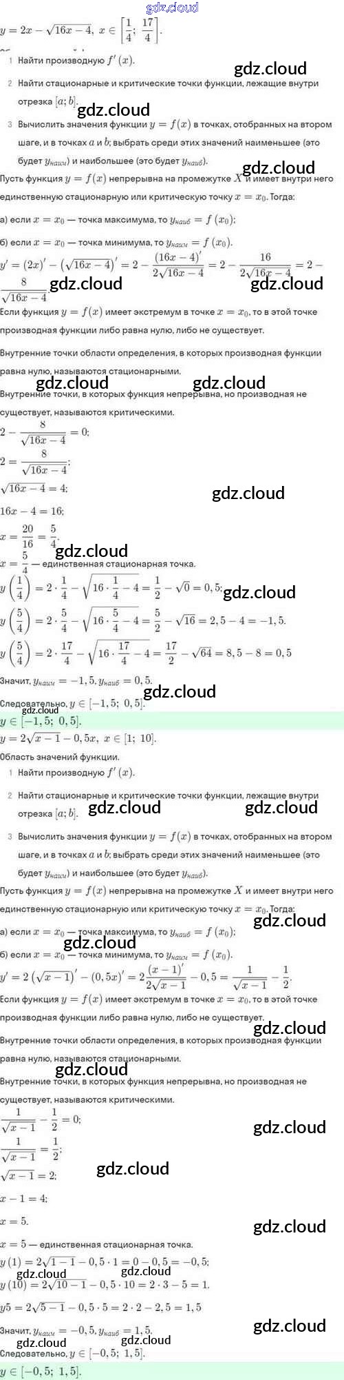 Ответы. §46. Нахождение наибольших и наименьших значений функции по Алгебре 10 класс Задачник Мордкович Базовый и углубленный уровень Мнемозина