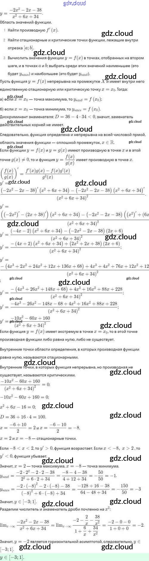 Ответы. §46. Нахождение наибольших и наименьших значений функции по Алгебре 10 класс Задачник Мордкович Базовый и углубленный уровень Мнемозина
