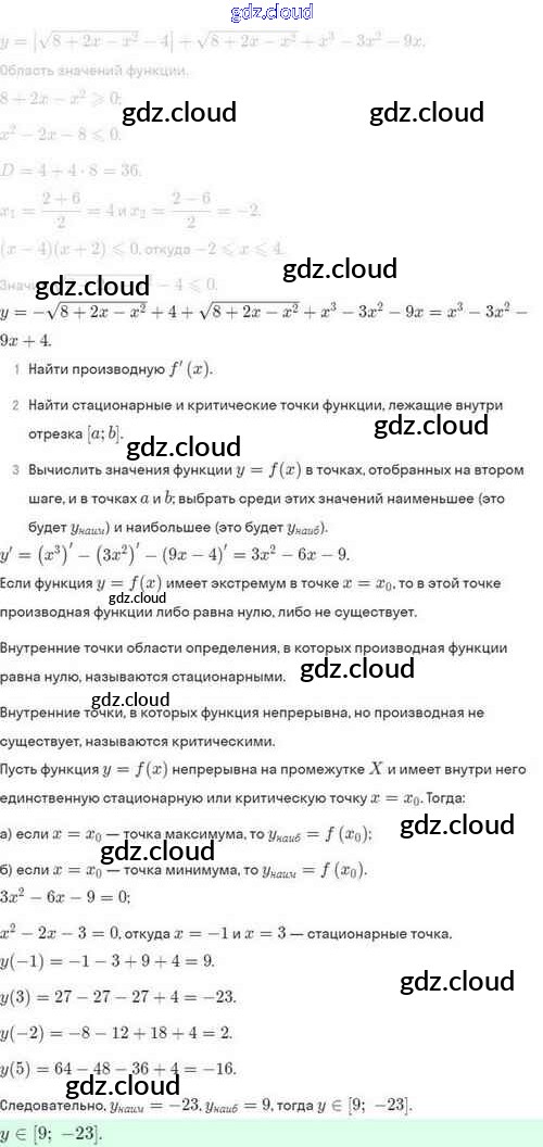 Ответы. §46. Нахождение наибольших и наименьших значений функции по Алгебре 10 класс Задачник Мордкович Базовый и углубленный уровень Мнемозина