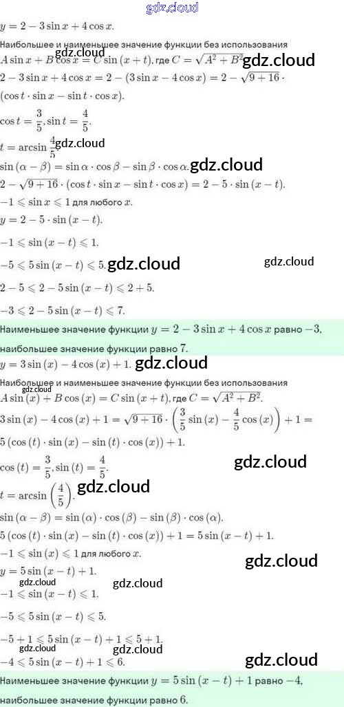Ответы. §46. Нахождение наибольших и наименьших значений функции по Алгебре 10 класс Задачник Мордкович Базовый и углубленный уровень Мнемозина