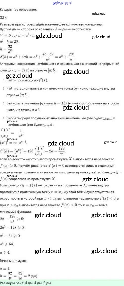 Ответы. §46. Нахождение наибольших и наименьших значений функции по Алгебре 10 класс Задачник Мордкович Базовый и углубленный уровень Мнемозина