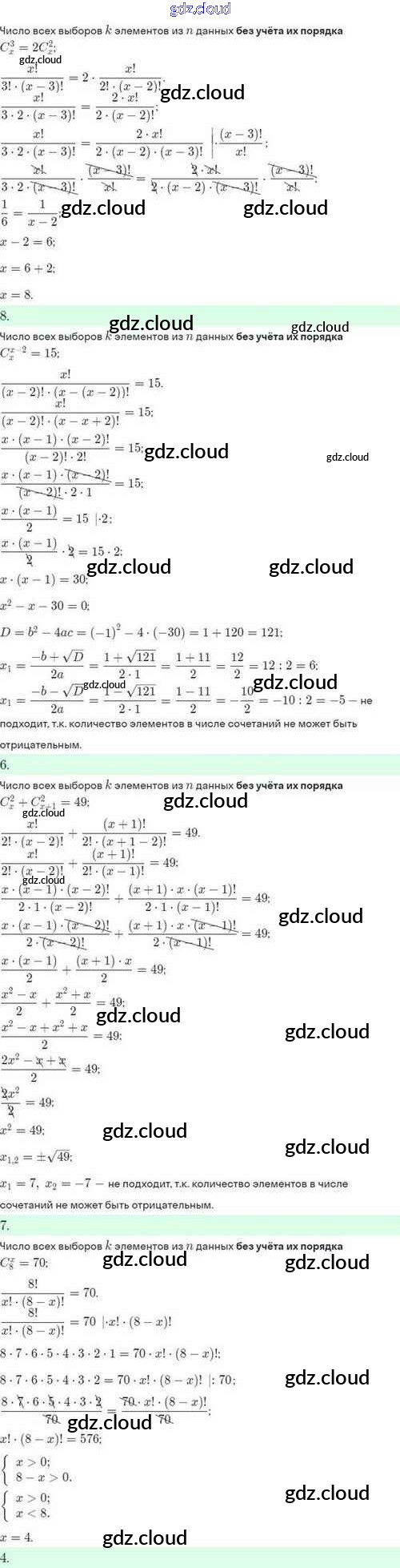 Ответы. §48. Выбор нескольких элементов. Биноминальные коэффициенты по Алгебре 10 класс Задачник Мордкович Базовый и углубленный уровень Мнемозина