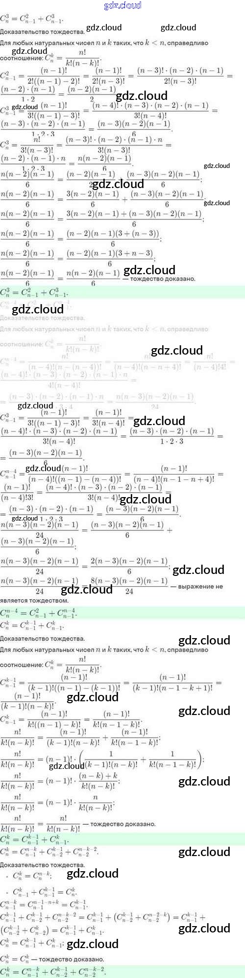 Ответы. §48. Выбор нескольких элементов. Биноминальные коэффициенты по Алгебре 10 класс Задачник Мордкович Базовый и углубленный уровень Мнемозина