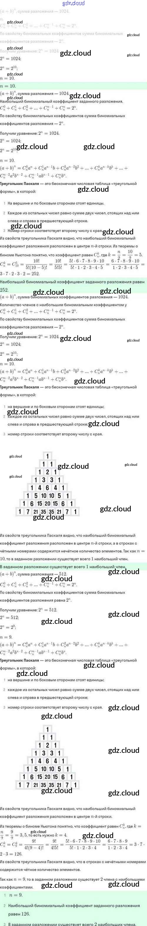 Ответы. §48. Выбор нескольких элементов. Биноминальные коэффициенты по Алгебре 10 класс Задачник Мордкович Базовый и углубленный уровень Мнемозина