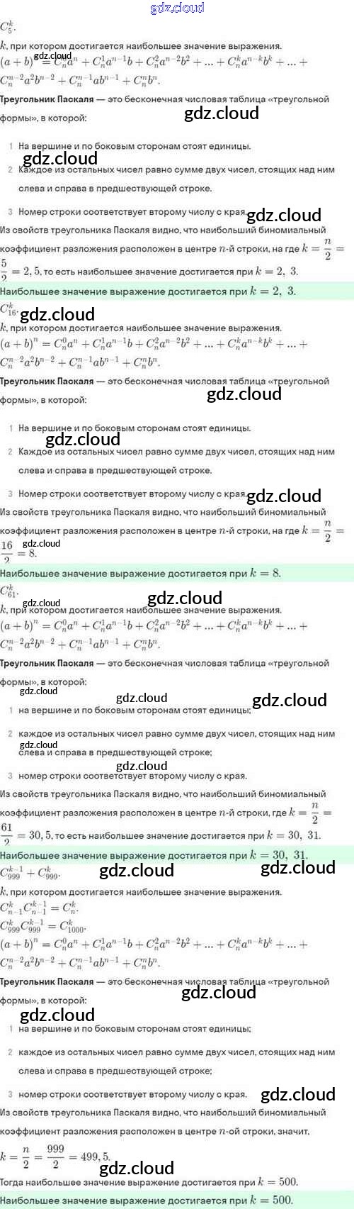 Ответы. §48. Выбор нескольких элементов. Биноминальные коэффициенты по Алгебре 10 класс Задачник Мордкович Базовый и углубленный уровень Мнемозина