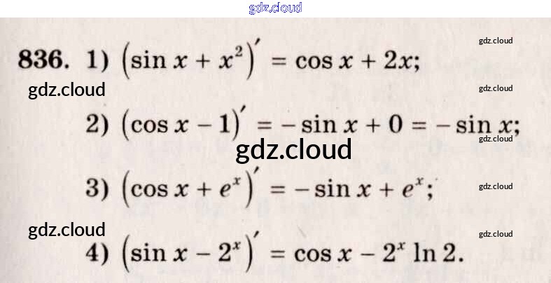 Ответ на задание 836 Учебник Алгебра за 10, 11 (десятый, одиннадцатый) класс Алимов, Ткачева, Колягин, Федорова, Шабунин Базовый и углубленный уровень 2015