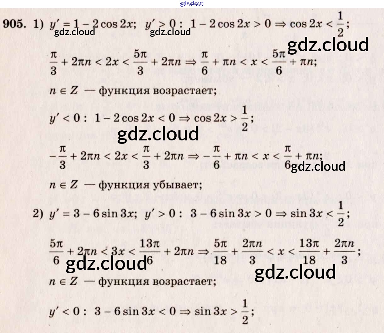 Ответ на задание 905 Учебник Алгебра за 10, 11 (десятый, одиннадцатый) класс Алимов, Ткачева, Колягин, Федорова, Шабунин Базовый и углубленный уровень 2015