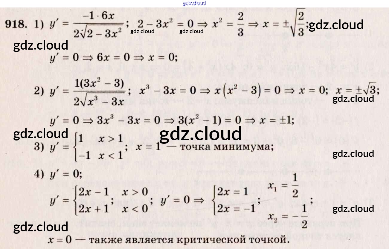 Ответ на задание 918 Учебник Алгебра за 10, 11 (десятый, одиннадцатый) класс Алимов, Ткачева, Колягин, Федорова, Шабунин Базовый и углубленный уровень 2015
