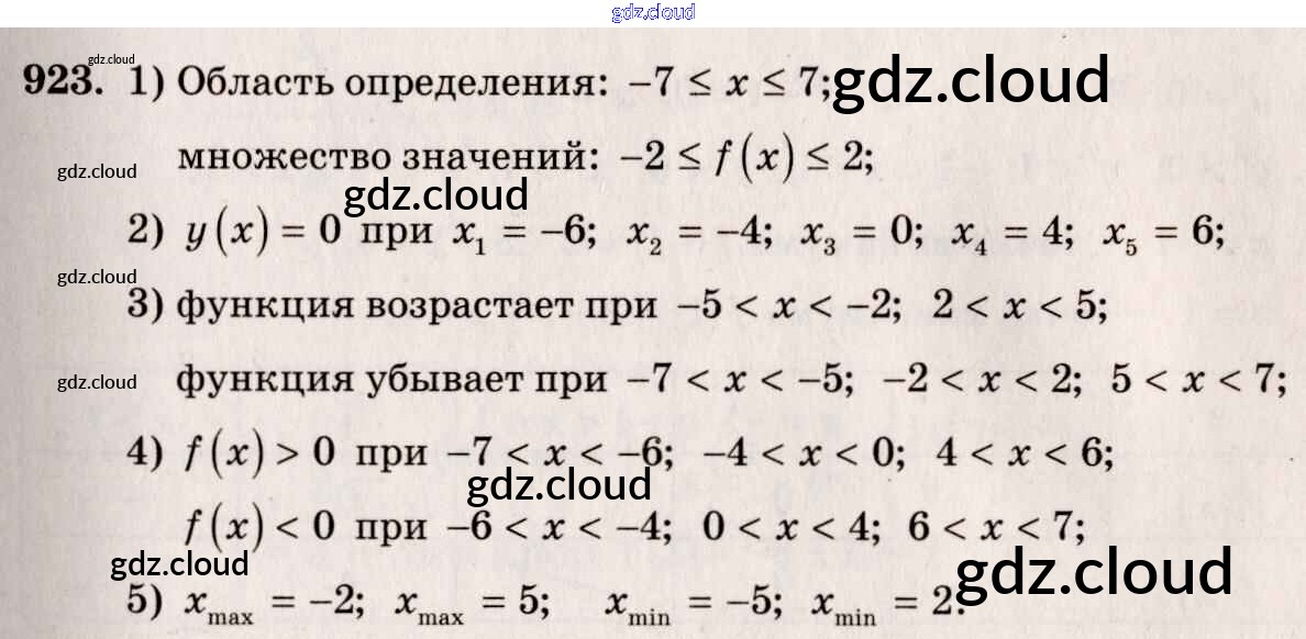 Ответ на задание 923 Учебник Алгебра за 10, 11 (десятый, одиннадцатый) класс Алимов, Ткачева, Колягин, Федорова, Шабунин Базовый и углубленный уровень 2015
