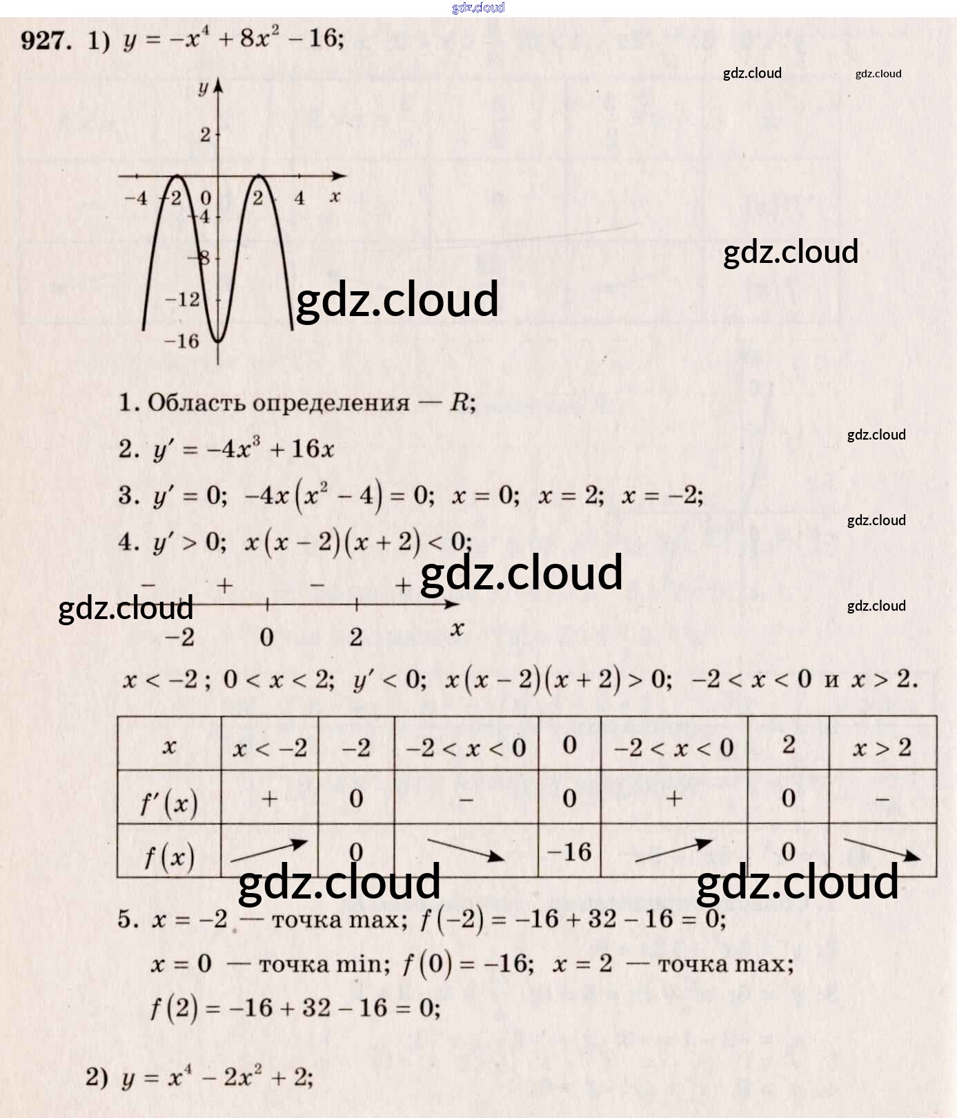 Ответ на задание 927 Учебник Алгебра за 10, 11 (десятый, одиннадцатый) класс Алимов, Ткачева, Колягин, Федорова, Шабунин Базовый и углубленный уровень 2015