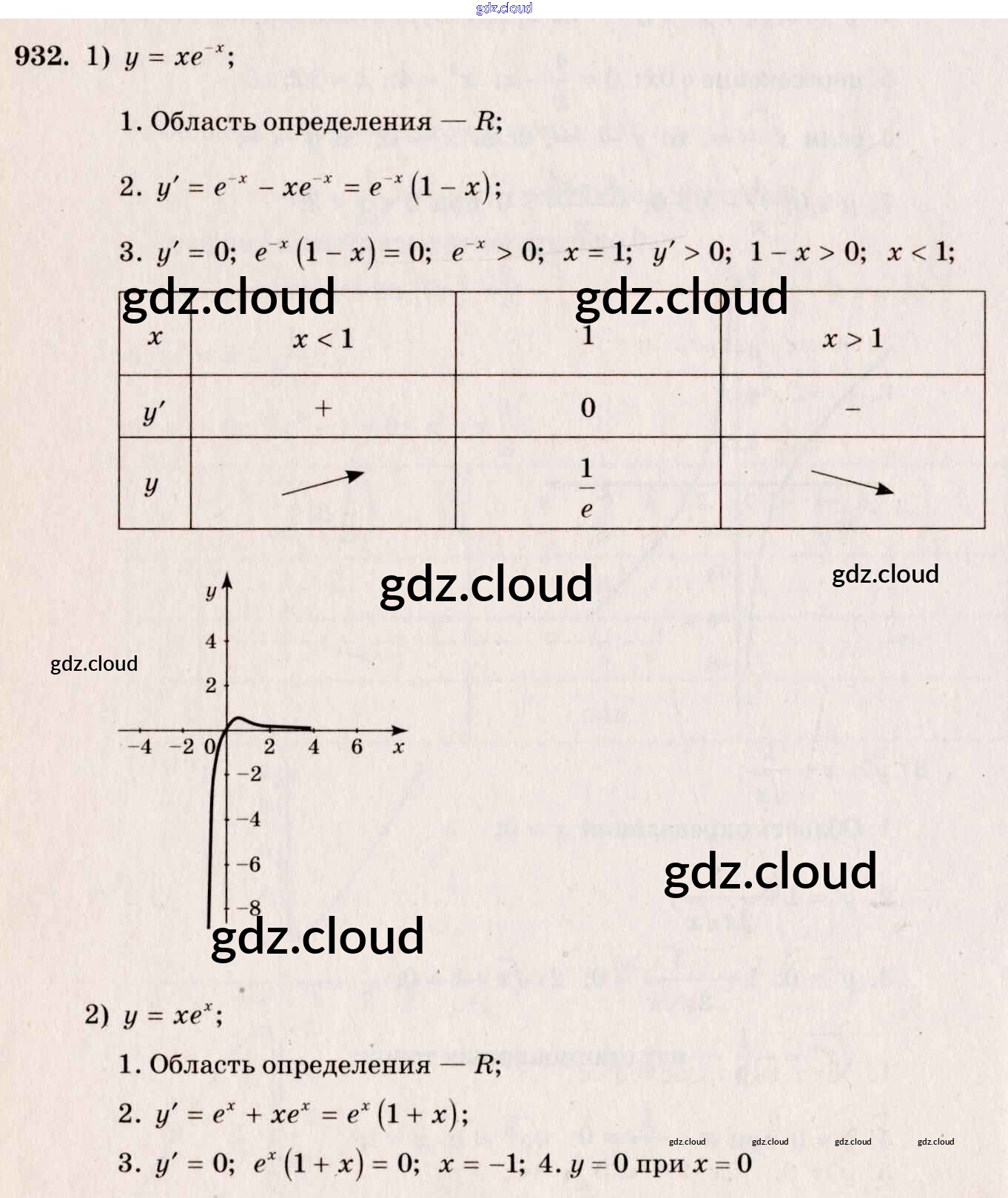 Ответ на задание 932 Учебник Алгебра за 10, 11 (десятый, одиннадцатый) класс Алимов, Ткачева, Колягин, Федорова, Шабунин Базовый и углубленный уровень 2015
