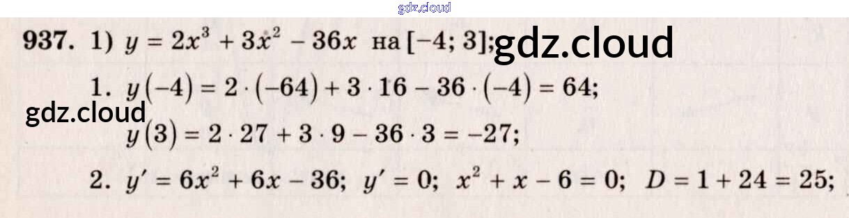 Ответ на задание 937 Учебник Алгебра за 10, 11 (десятый, одиннадцатый) класс Алимов, Ткачева, Колягин, Федорова, Шабунин Базовый и углубленный уровень 2015