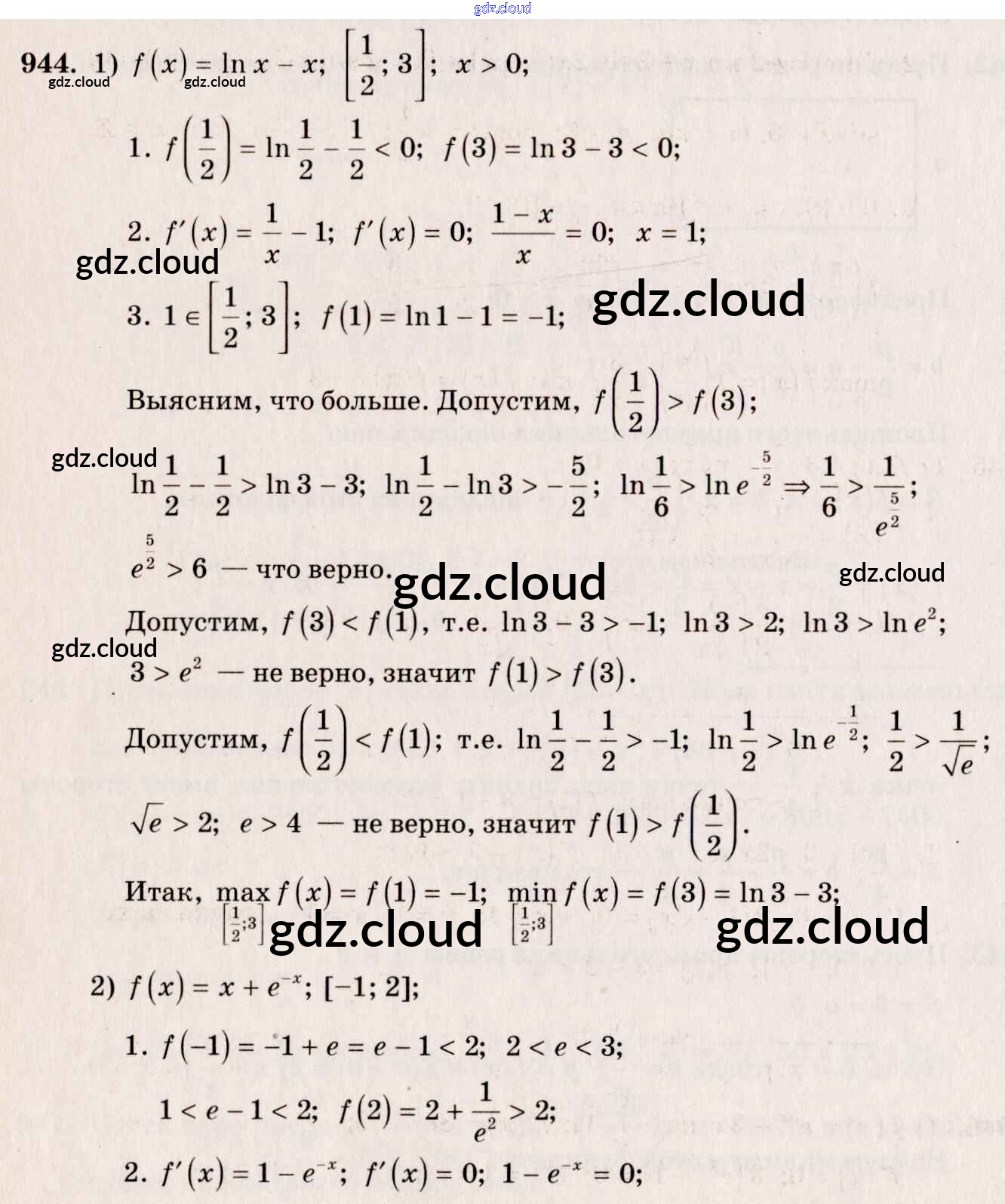Ответ на задание 944 Учебник Алгебра за 10, 11 (десятый, одиннадцатый) класс Алимов, Ткачева, Колягин, Федорова, Шабунин Базовый и углубленный уровень 2015