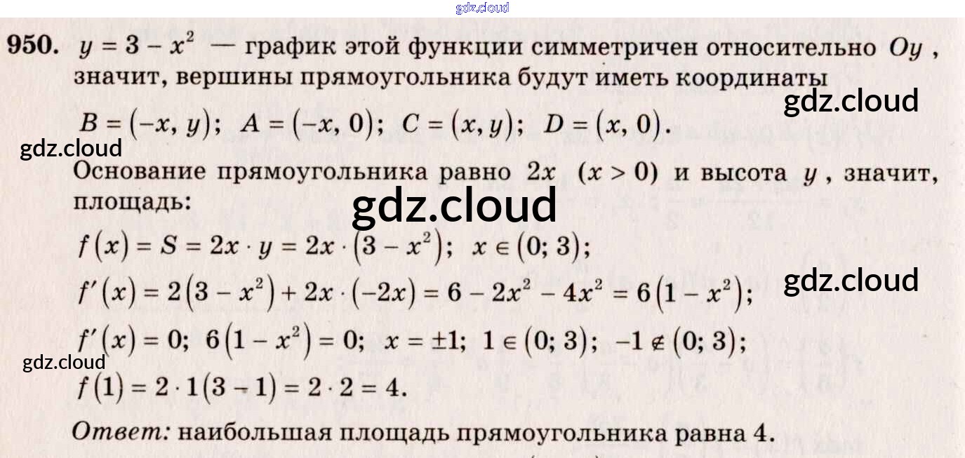 Ответ на задание 950 Учебник Алгебра за 10, 11 (десятый, одиннадцатый) класс Алимов, Ткачева, Колягин, Федорова, Шабунин Базовый и углубленный уровень 2015