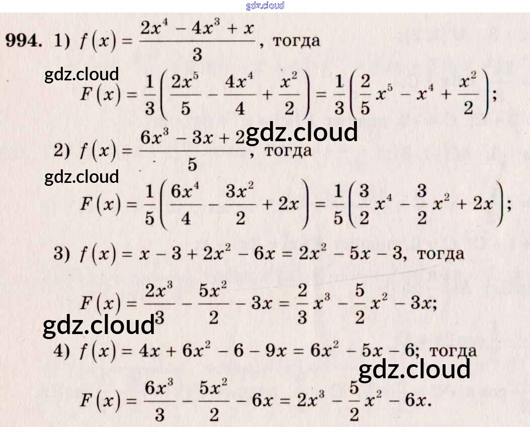 Ответ на задание 994 Учебник Алгебра за 10, 11 (десятый, одиннадцатый) класс Алимов, Ткачева, Колягин, Федорова, Шабунин Базовый и углубленный уровень 2015