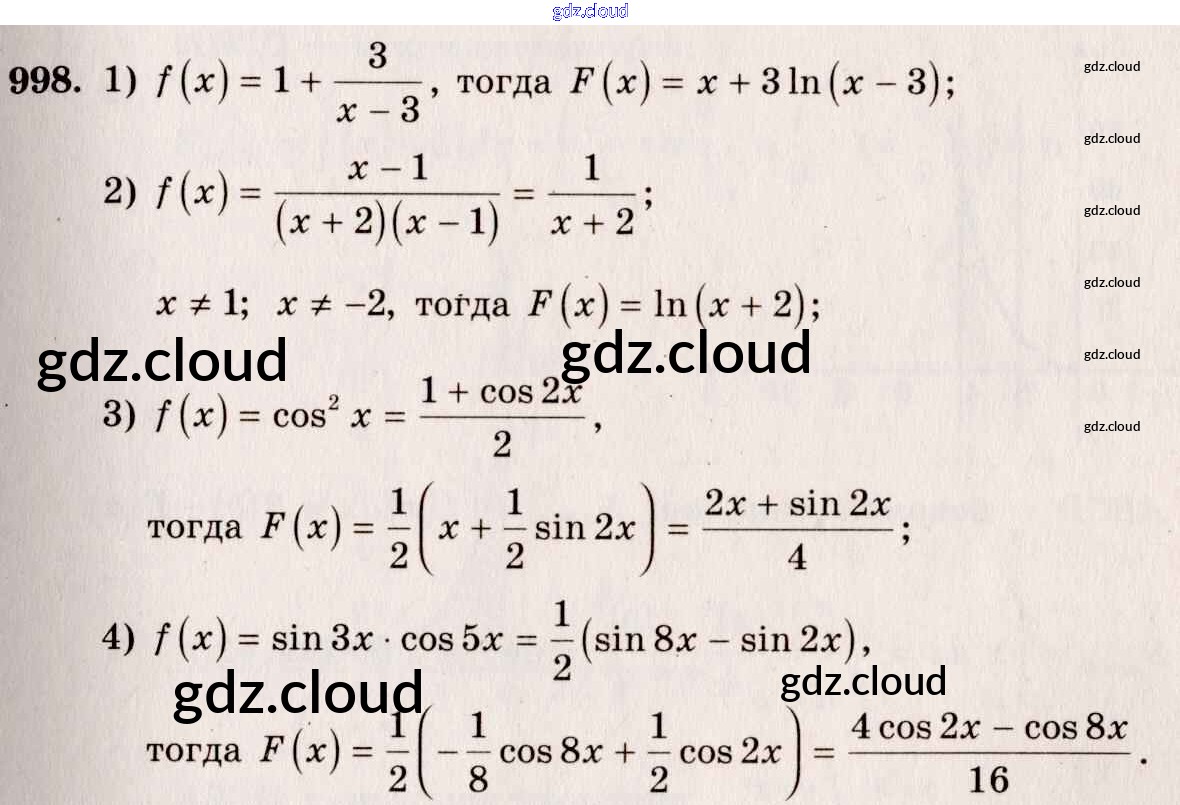 Ответ на задание 998 Учебник Алгебра за 10, 11 (десятый, одиннадцатый) класс Алимов, Ткачева, Колягин, Федорова, Шабунин Базовый и углубленный уровень 2015