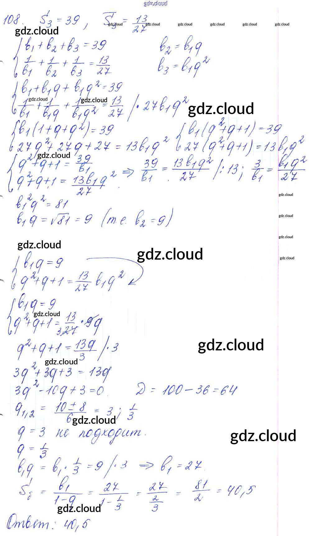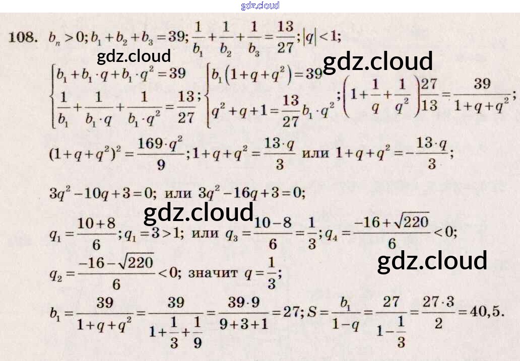 Ответ на задание 108 Учебник Алгебра за 10, 11 (десятый, одиннадцатый) класс Алимов, Ткачева, Колягин, Федорова, Шабунин Базовый и углубленный уровень 2015