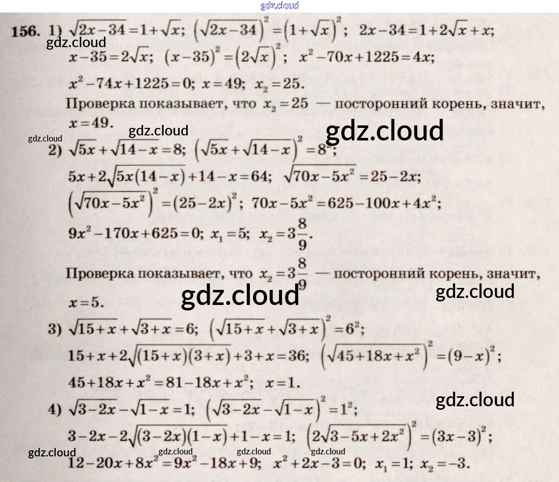 Ответ на задание 156 Учебник Алгебра за 10, 11 (десятый, одиннадцатый) класс Алимов, Ткачева, Колягин, Федорова, Шабунин Базовый и углубленный уровень 2015