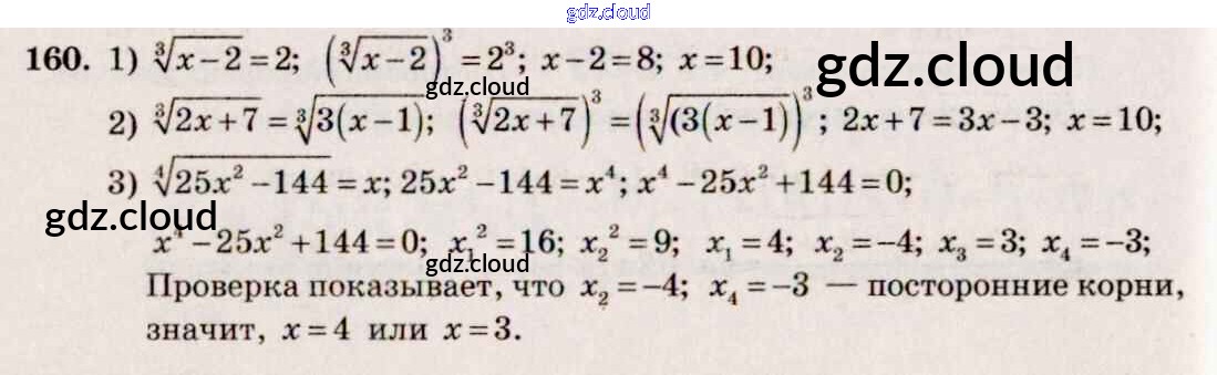 Ответ на задание 160 Учебник Алгебра за 10, 11 (десятый, одиннадцатый) класс Алимов, Ткачева, Колягин, Федорова, Шабунин Базовый и углубленный уровень 2015