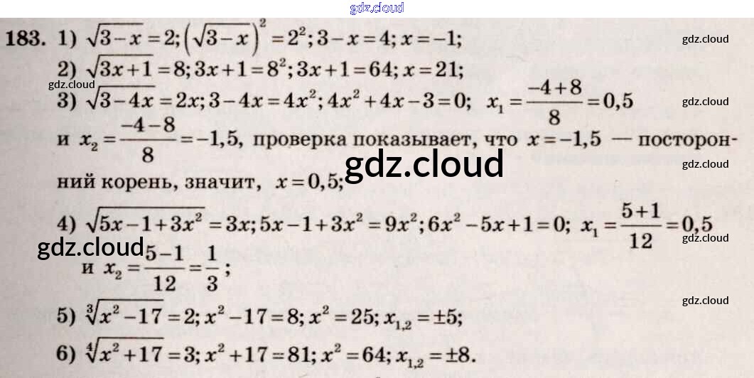 Ответ на задание 183 Учебник Алгебра за 10, 11 (десятый, одиннадцатый) класс Алимов, Ткачева, Колягин, Федорова, Шабунин Базовый и углубленный уровень 2015