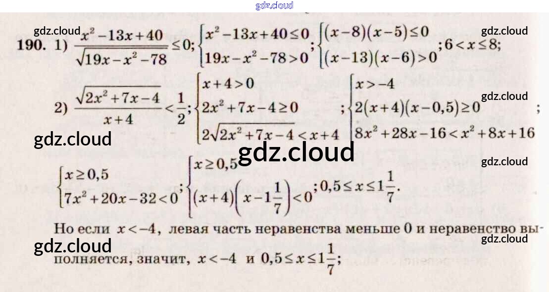 Ответ на задание 190 Учебник Алгебра за 10, 11 (десятый, одиннадцатый) класс Алимов, Ткачева, Колягин, Федорова, Шабунин Базовый и углубленный уровень 2015