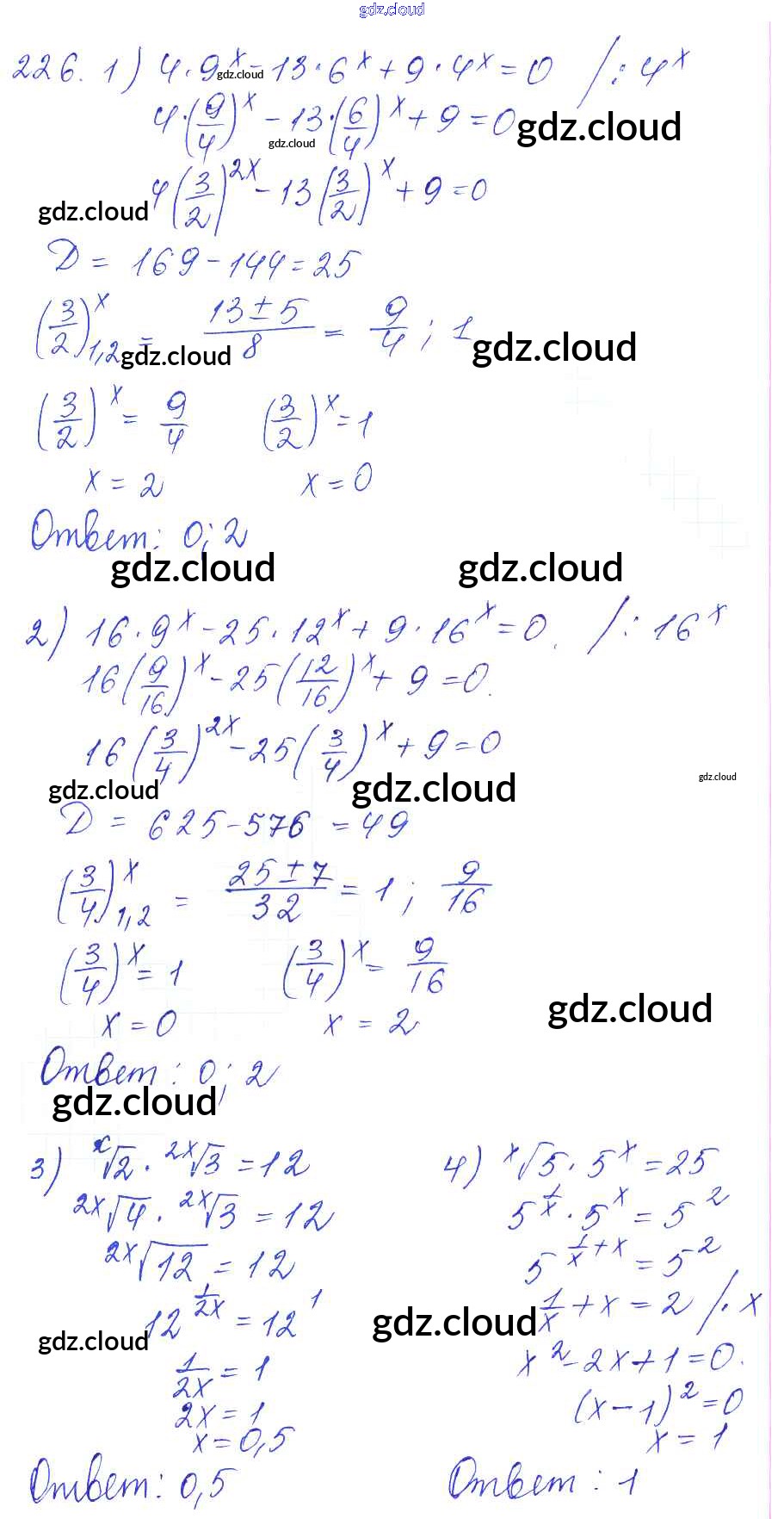Ответ на задание 226 Учебник Алгебра за 10, 11 (десятый, одиннадцатый) класс Алимов, Ткачева, Колягин, Федорова, Шабунин Базовый и углубленный уровень 2015