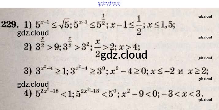 Ответ на задание 229 Учебник Алгебра за 10, 11 (десятый, одиннадцатый) класс Алимов, Ткачева, Колягин, Федорова, Шабунин Базовый и углубленный уровень 2015