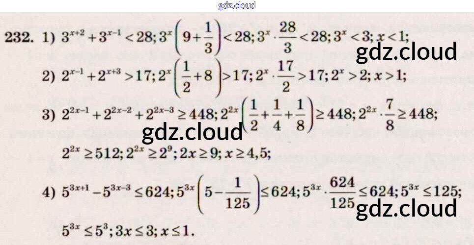 Ответ на задание 232 Учебник Алгебра за 10, 11 (десятый, одиннадцатый) класс Алимов, Ткачева, Колягин, Федорова, Шабунин Базовый и углубленный уровень 2015