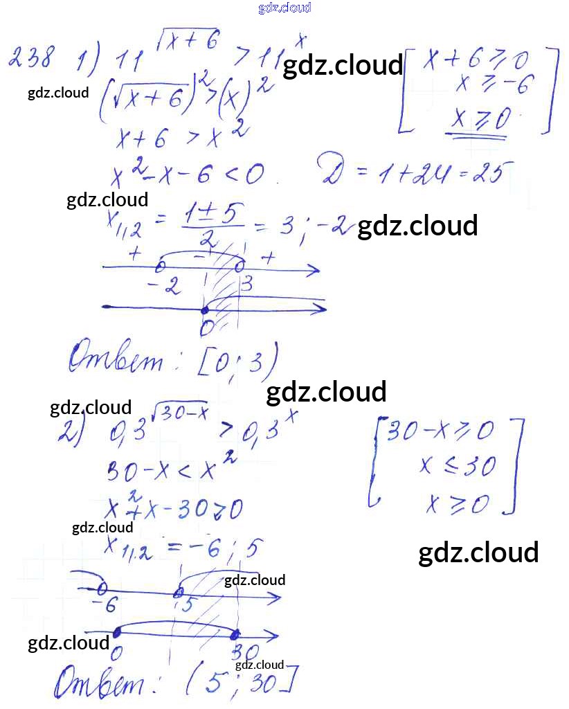 Ответ на задание 238 Учебник Алгебра за 10, 11 (десятый, одиннадцатый) класс Алимов, Ткачева, Колягин, Федорова, Шабунин Базовый и углубленный уровень 2015