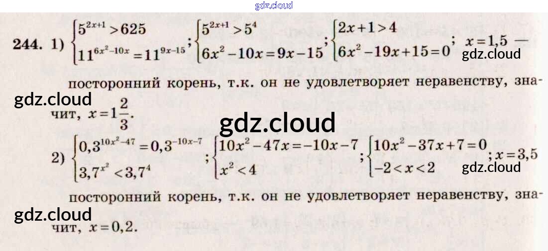 Ответ на задание 244 Учебник Алгебра за 10, 11 (десятый, одиннадцатый) класс Алимов, Ткачева, Колягин, Федорова, Шабунин Базовый и углубленный уровень 2015