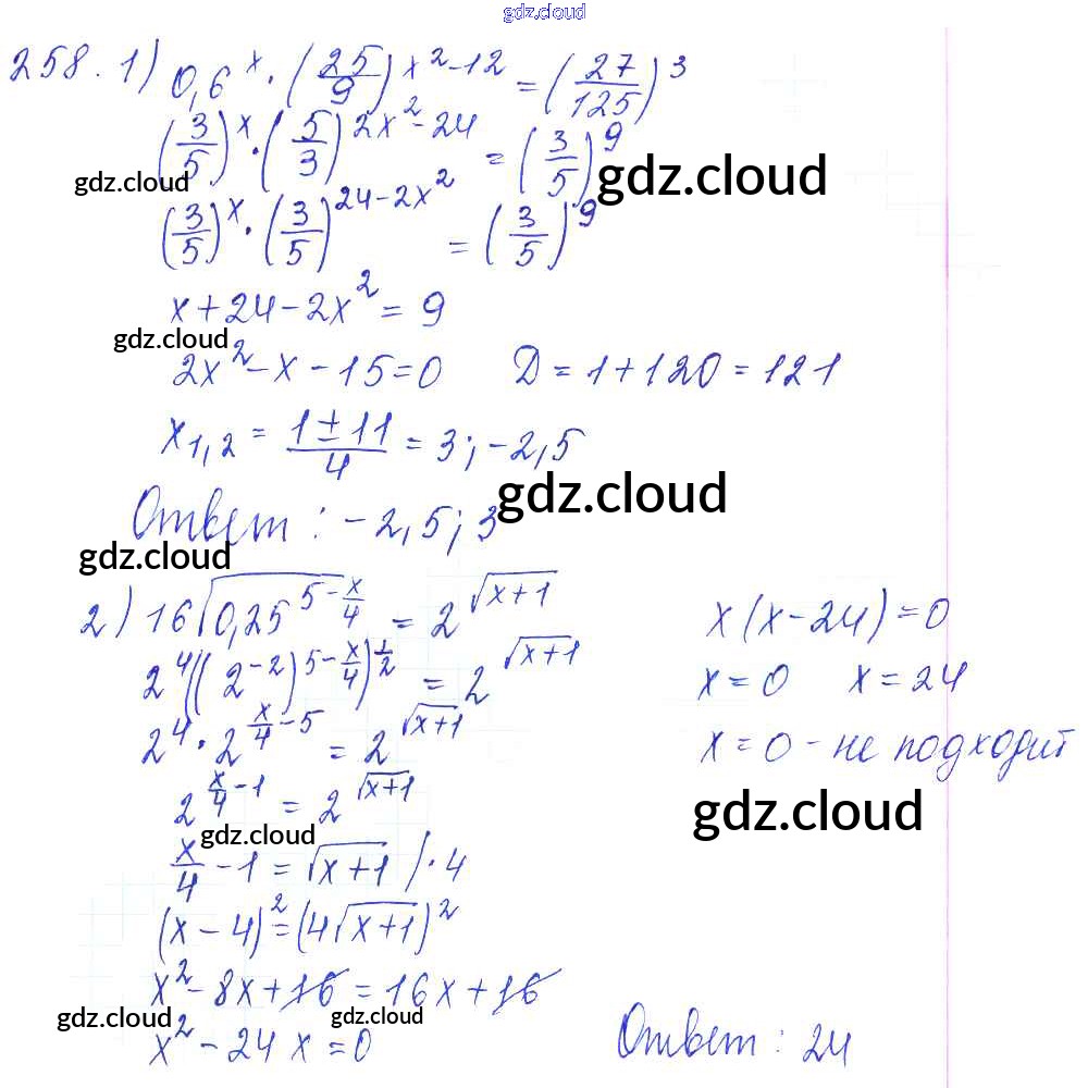 Ответ на задание 258 Учебник Алгебра за 10, 11 (десятый, одиннадцатый) класс Алимов, Ткачева, Колягин, Федорова, Шабунин Базовый и углубленный уровень 2015