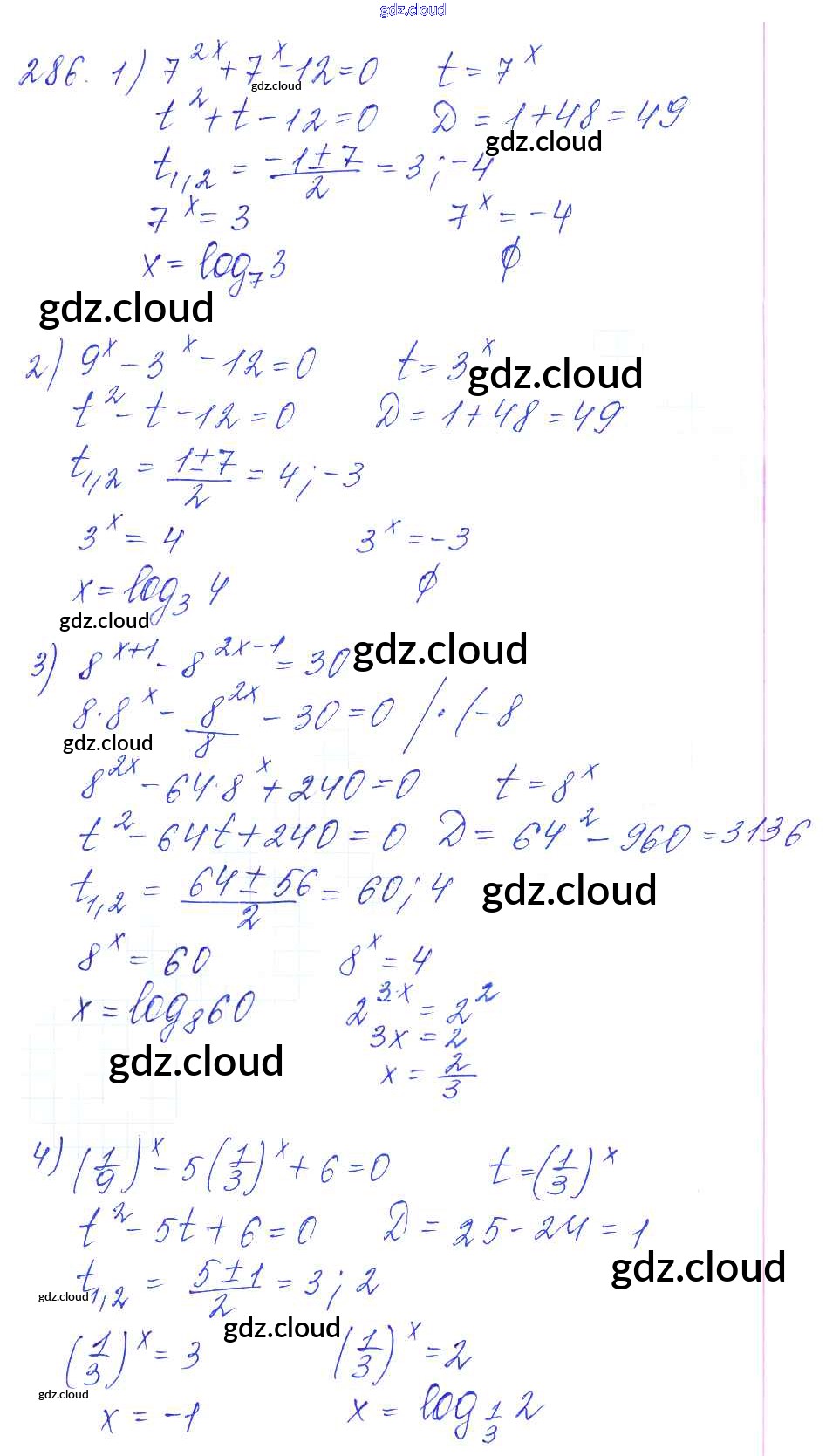 Ответ на задание 286 Учебник Алгебра за 10, 11 (десятый, одиннадцатый) класс Алимов, Ткачева, Колягин, Федорова, Шабунин Базовый и углубленный уровень 2015