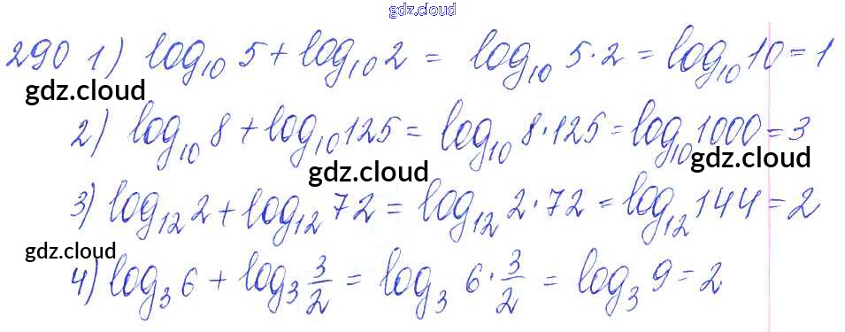 Ответ на задание 290 Учебник Алгебра за 10, 11 (десятый, одиннадцатый) класс Алимов, Ткачева, Колягин, Федорова, Шабунин Базовый и углубленный уровень 2015