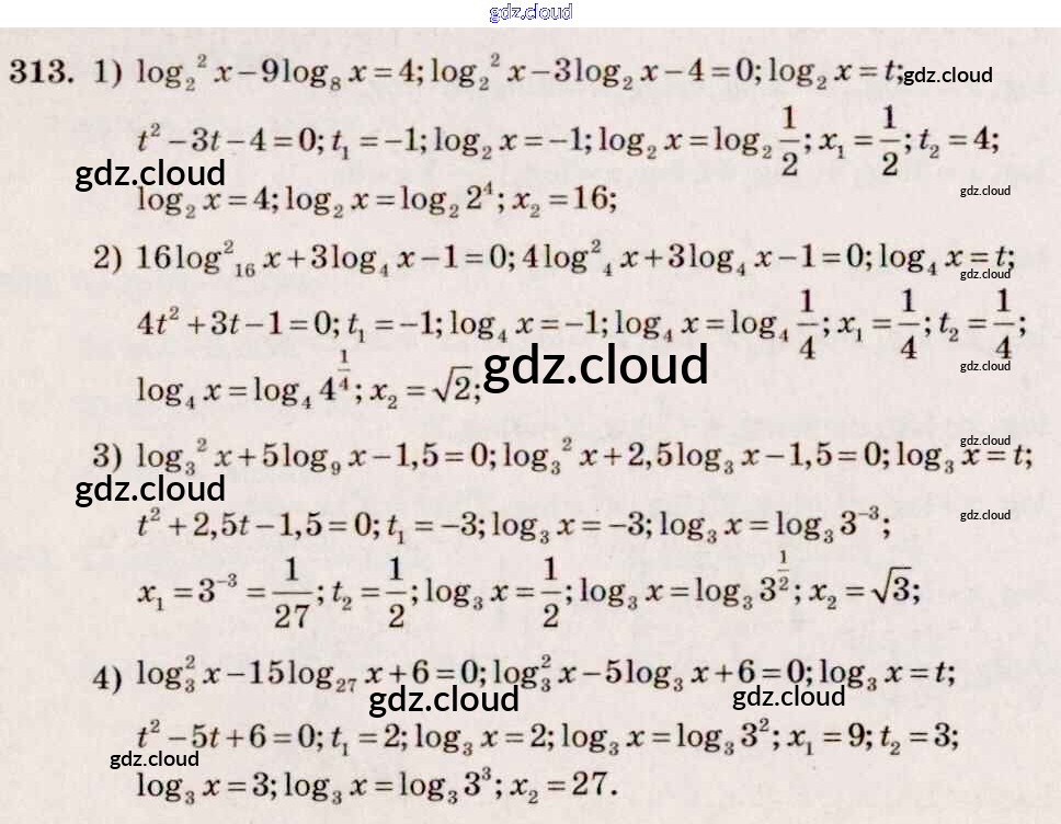 Ответ на задание 313 Учебник Алгебра за 10, 11 (десятый, одиннадцатый) класс Алимов, Ткачева, Колягин, Федорова, Шабунин Базовый и углубленный уровень 2015