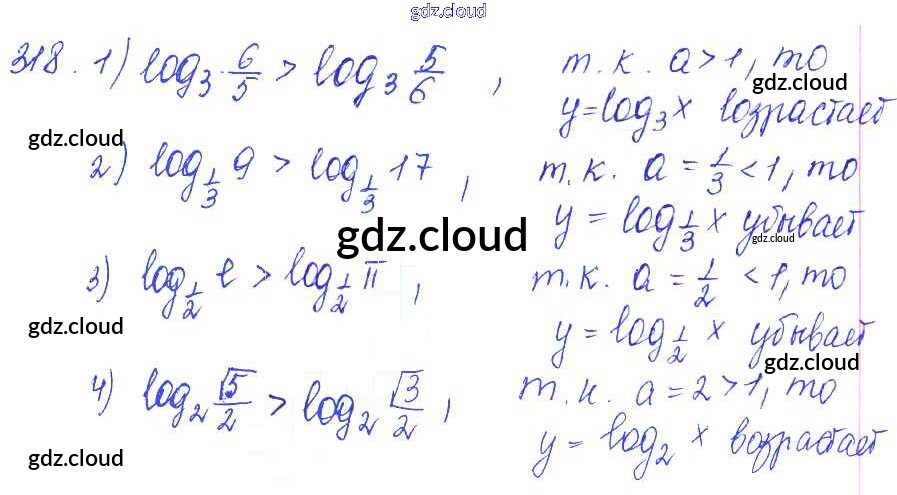 Ответ на задание 318 Учебник Алгебра за 10, 11 (десятый, одиннадцатый) класс Алимов, Ткачева, Колягин, Федорова, Шабунин Базовый и углубленный уровень 2015