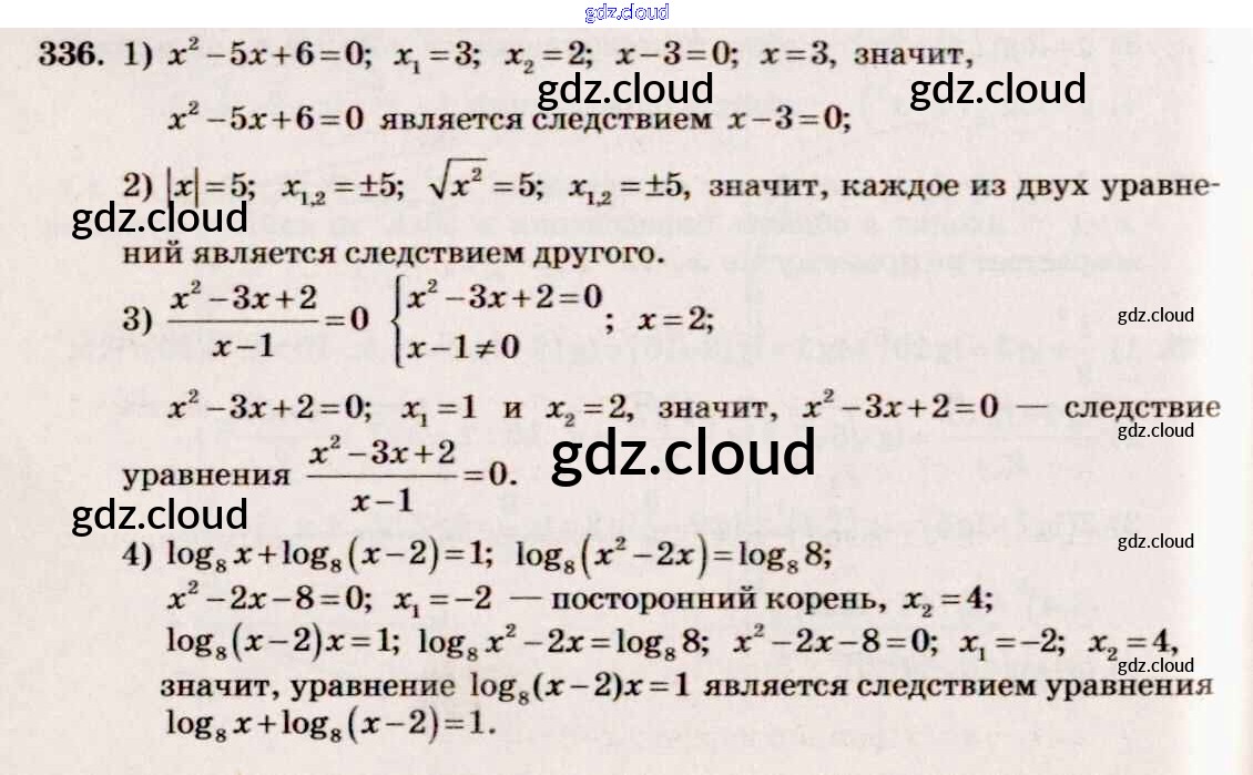 Ответ на задание 336 Учебник Алгебра за 10, 11 (десятый, одиннадцатый) класс Алимов, Ткачева, Колягин, Федорова, Шабунин Базовый и углубленный уровень 2015