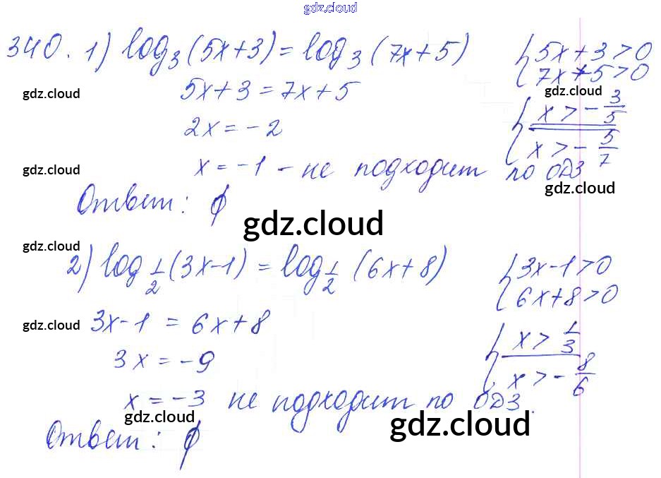 Ответ на задание 340 Учебник Алгебра за 10, 11 (десятый, одиннадцатый) класс Алимов, Ткачева, Колягин, Федорова, Шабунин Базовый и углубленный уровень 2015