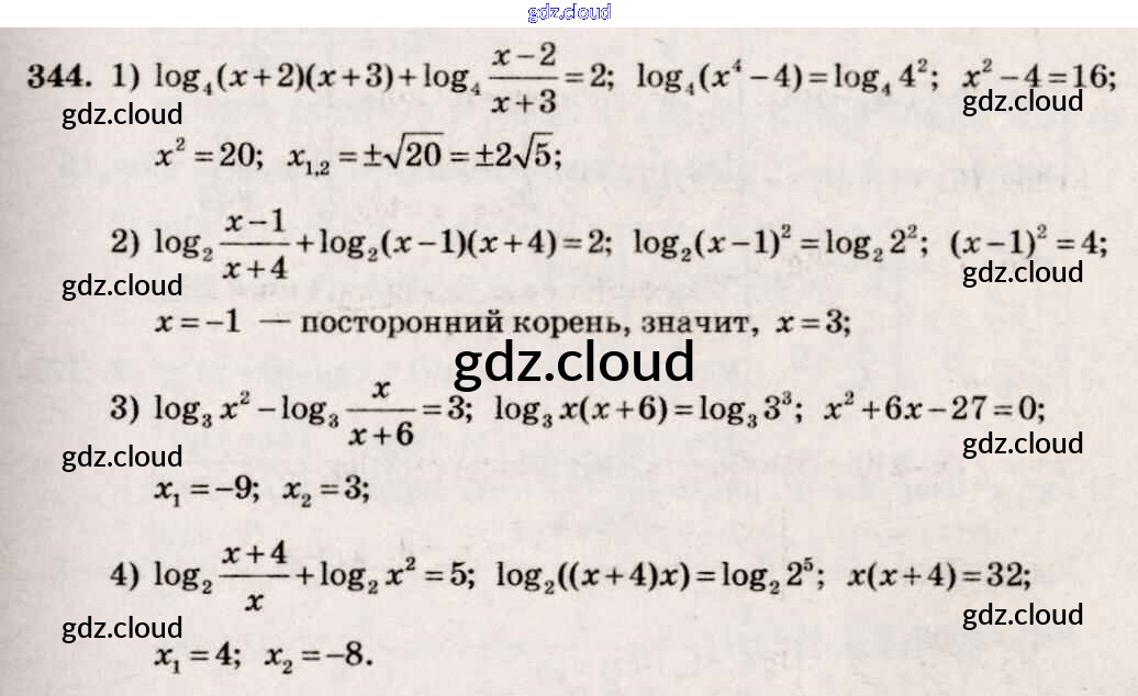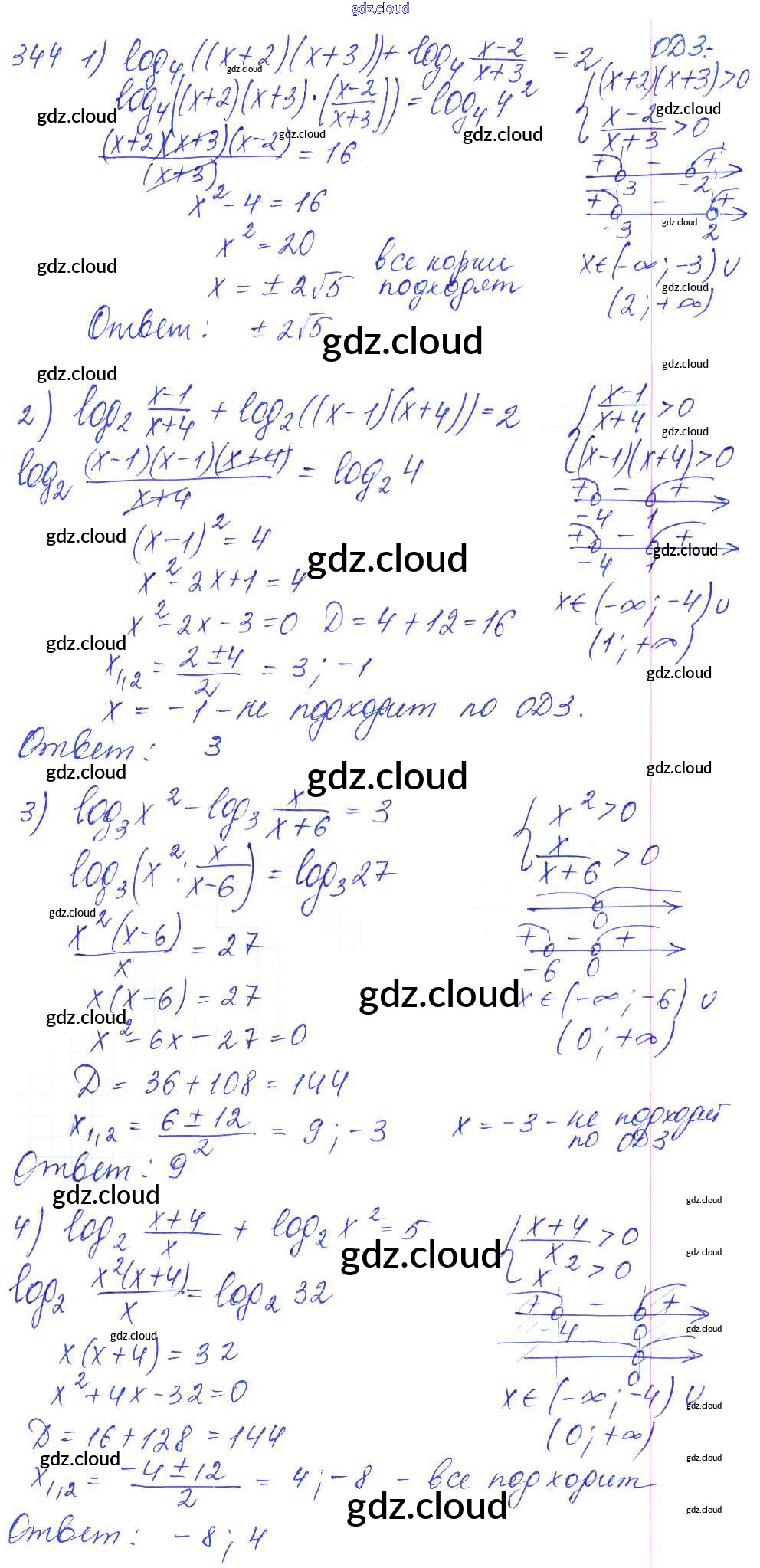 Ответ на задание 344 Учебник Алгебра за 10, 11 (десятый, одиннадцатый) класс Алимов, Ткачева, Колягин, Федорова, Шабунин Базовый и углубленный уровень 2015