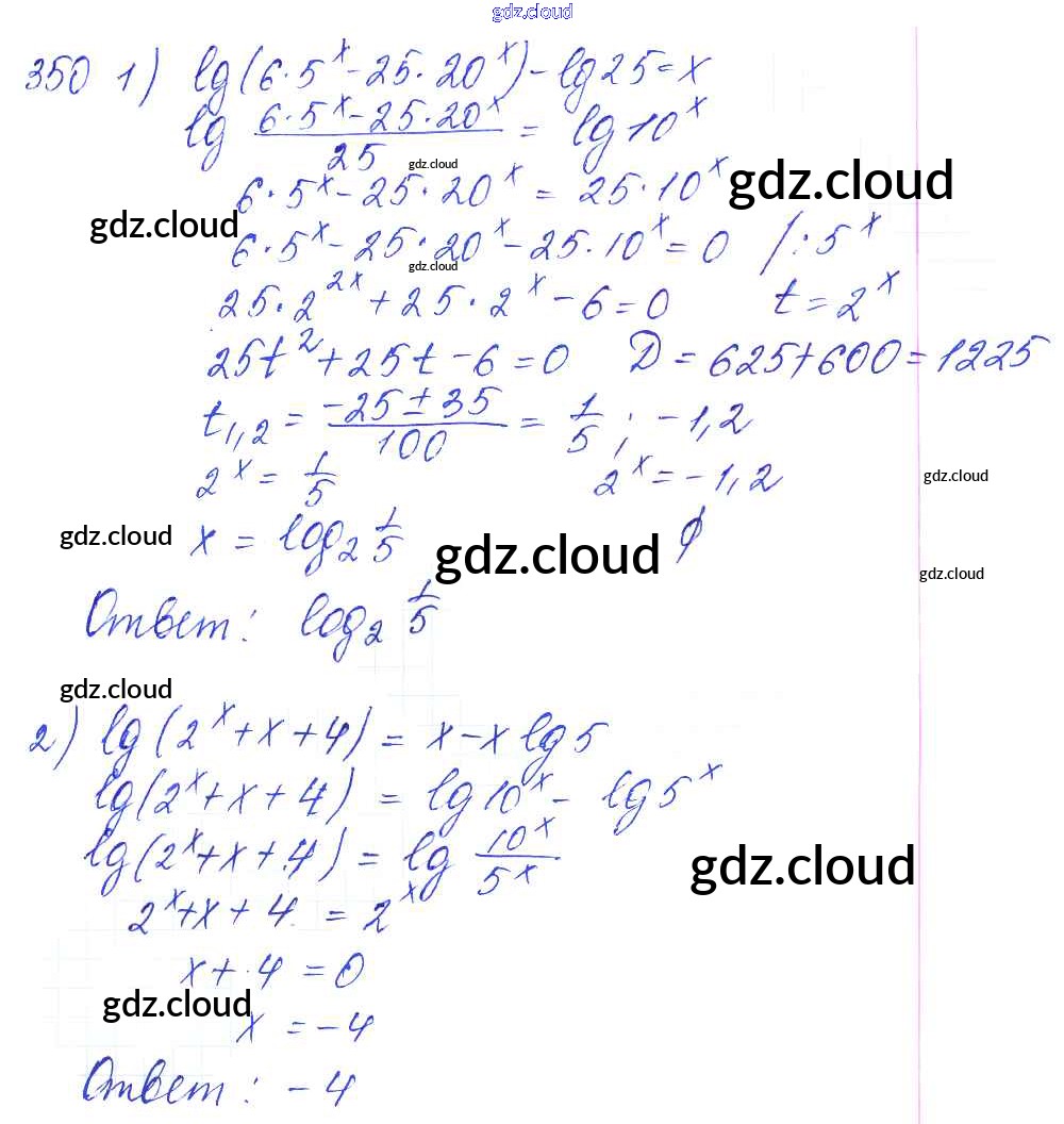 Ответ на задание 350 Учебник Алгебра за 10, 11 (десятый, одиннадцатый) класс Алимов, Ткачева, Колягин, Федорова, Шабунин Базовый и углубленный уровень 2015