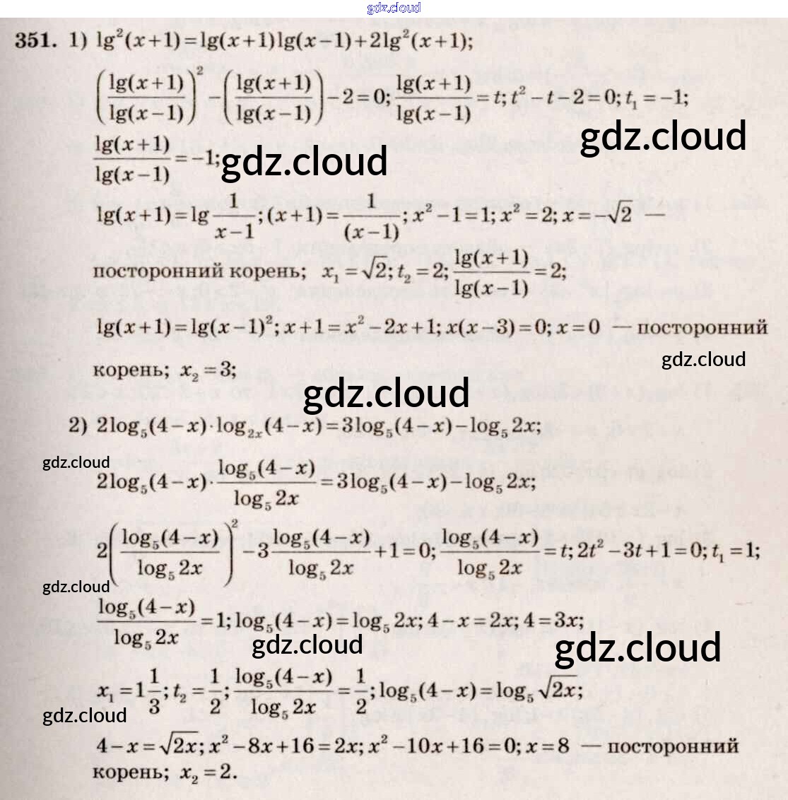Ответ на задание 351 Учебник Алгебра за 10, 11 (десятый, одиннадцатый) класс Алимов, Ткачева, Колягин, Федорова, Шабунин Базовый и углубленный уровень 2015