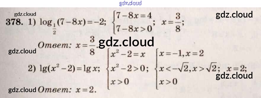 Ответ на задание 378 Учебник Алгебра за 10, 11 (десятый, одиннадцатый) класс Алимов, Ткачева, Колягин, Федорова, Шабунин Базовый и углубленный уровень 2015