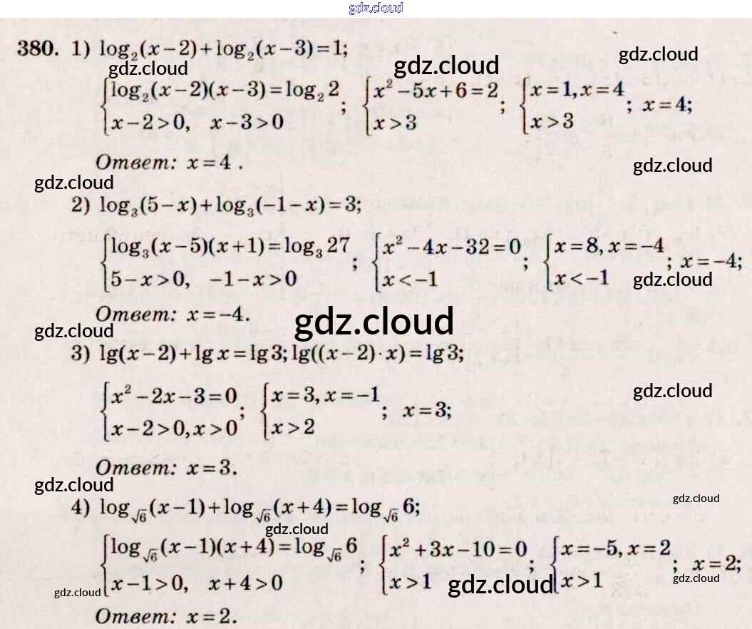 Ответ на задание 380 Учебник Алгебра за 10, 11 (десятый, одиннадцатый) класс Алимов, Ткачева, Колягин, Федорова, Шабунин Базовый и углубленный уровень 2015