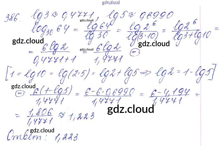 Ответ на задание 386 Учебник Алгебра за 10, 11 (десятый, одиннадцатый) класс Алимов, Ткачева, Колягин, Федорова, Шабунин Базовый и углубленный уровень 2015
