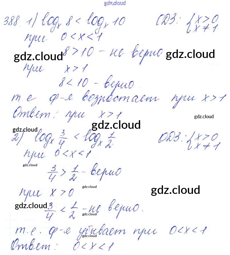 Ответ на задание 388 Учебник Алгебра за 10, 11 (десятый, одиннадцатый) класс Алимов, Ткачева, Колягин, Федорова, Шабунин Базовый и углубленный уровень 2015
