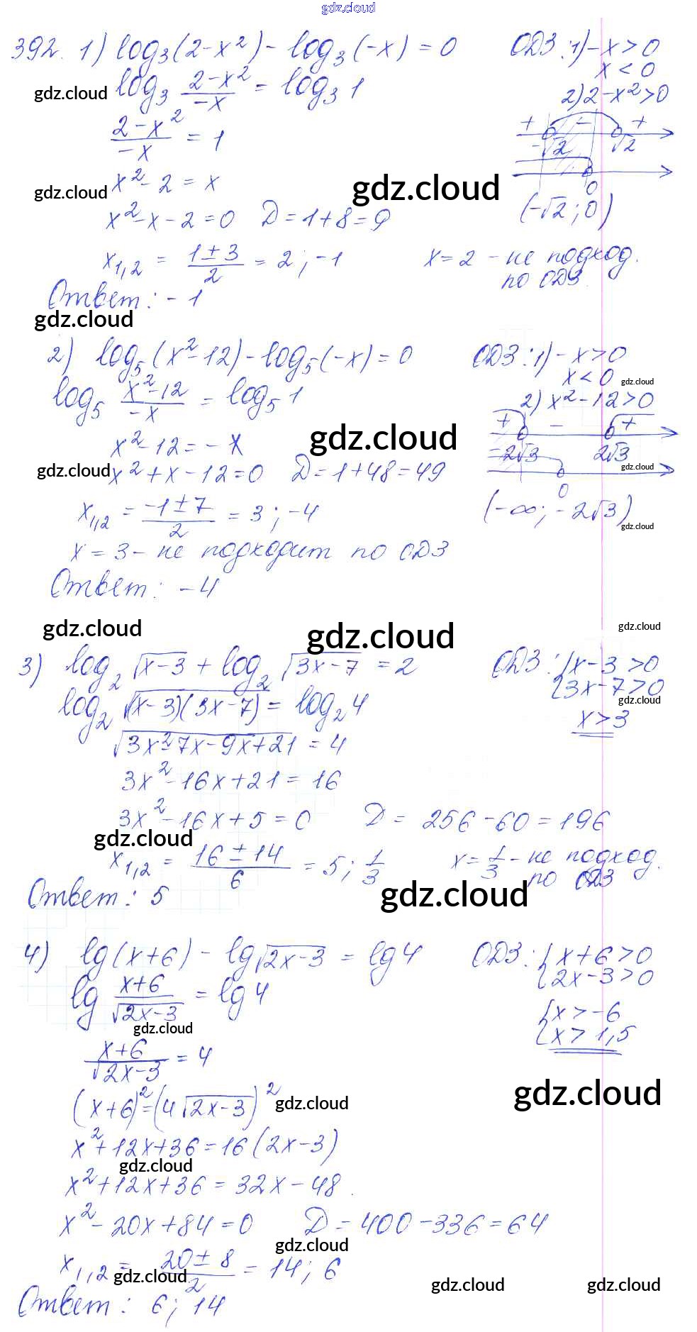 Ответ на задание 392 Учебник Алгебра за 10, 11 (десятый, одиннадцатый) класс Алимов, Ткачева, Колягин, Федорова, Шабунин Базовый и углубленный уровень 2015