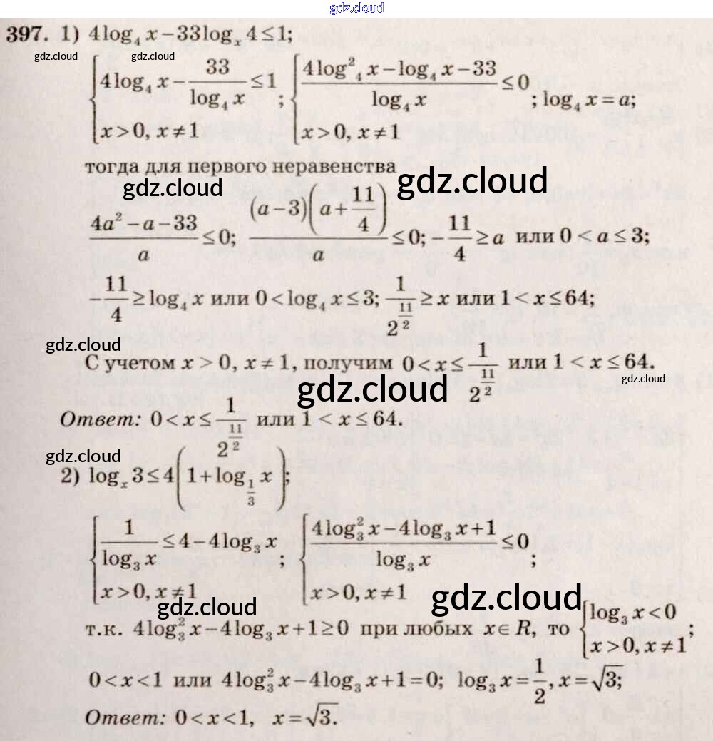 Ответ на задание 397 Учебник Алгебра за 10, 11 (десятый, одиннадцатый) класс Алимов, Ткачева, Колягин, Федорова, Шабунин Базовый и углубленный уровень 2015