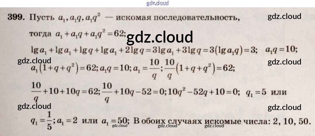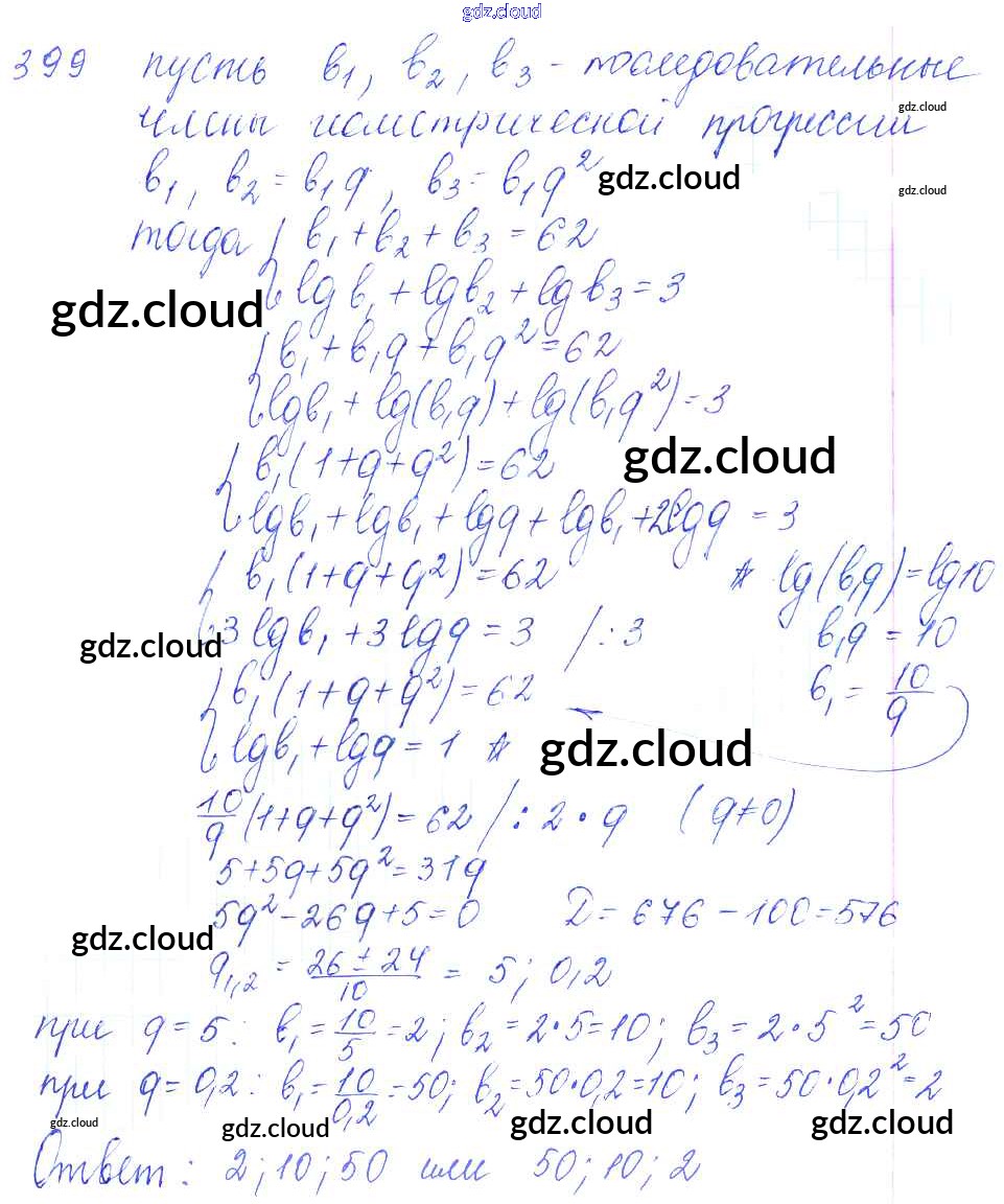 Ответ на задание 399 Учебник Алгебра за 10, 11 (десятый, одиннадцатый) класс Алимов, Ткачева, Колягин, Федорова, Шабунин Базовый и углубленный уровень 2015